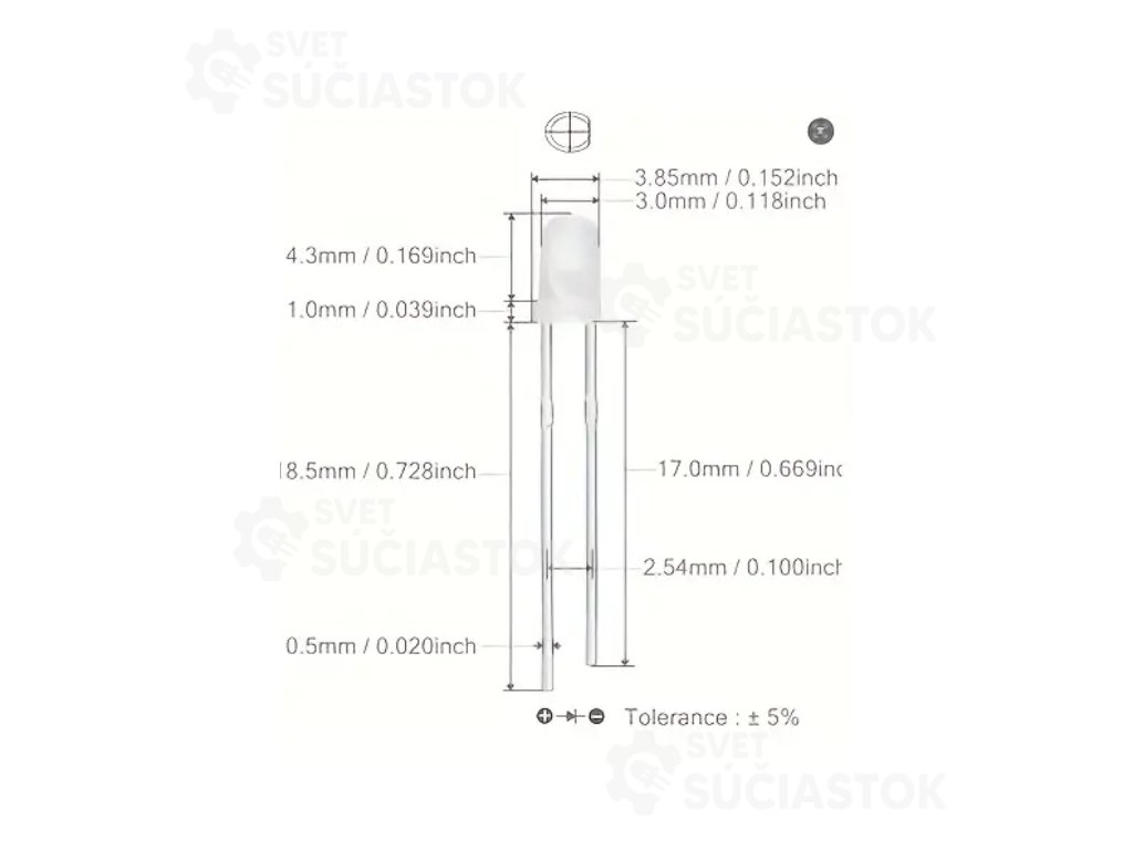 - Priemer: 3 mm (kruhová)