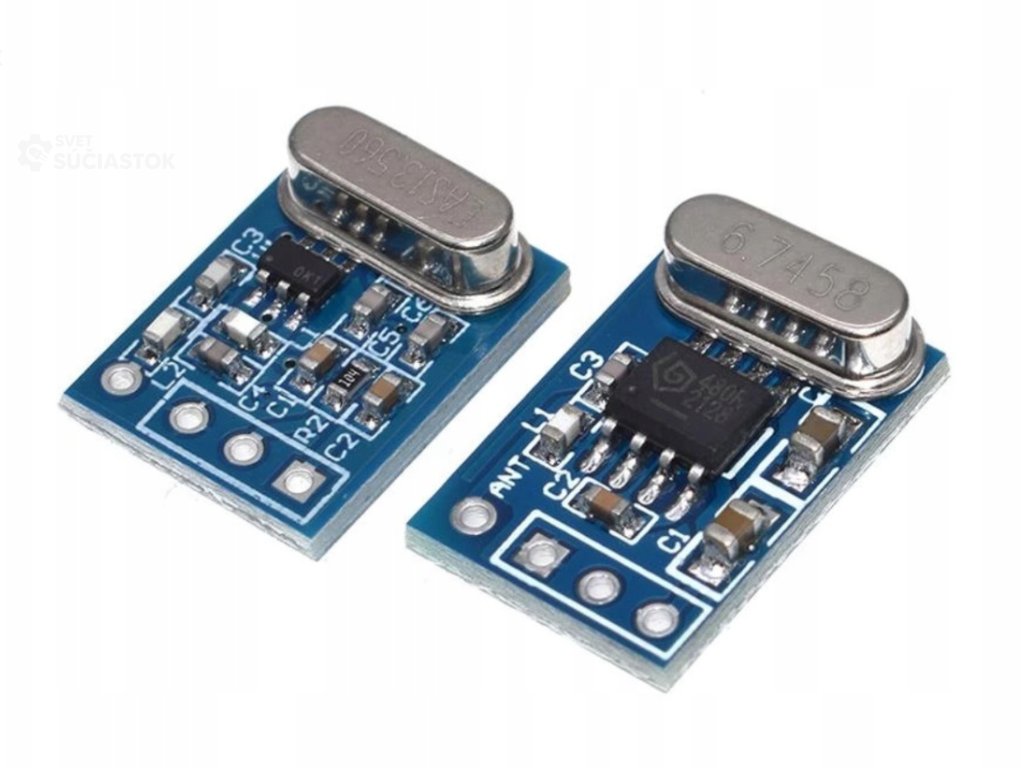 Súprava 433 MHz vysielača a prijímača určená pre bezdrôtovú komunikáciu medzi mikrokontrolérmi (Arduino, ESP, Raspberry Pi a pod.). Vysielač SYN115 posiela dáta na 433 MHz, ktoré prijíma modul SYN480R. Ide o jednoduché riešenie pre prenos signálov, ovládanie relé, senzorov alebo diaľkové spínanie.