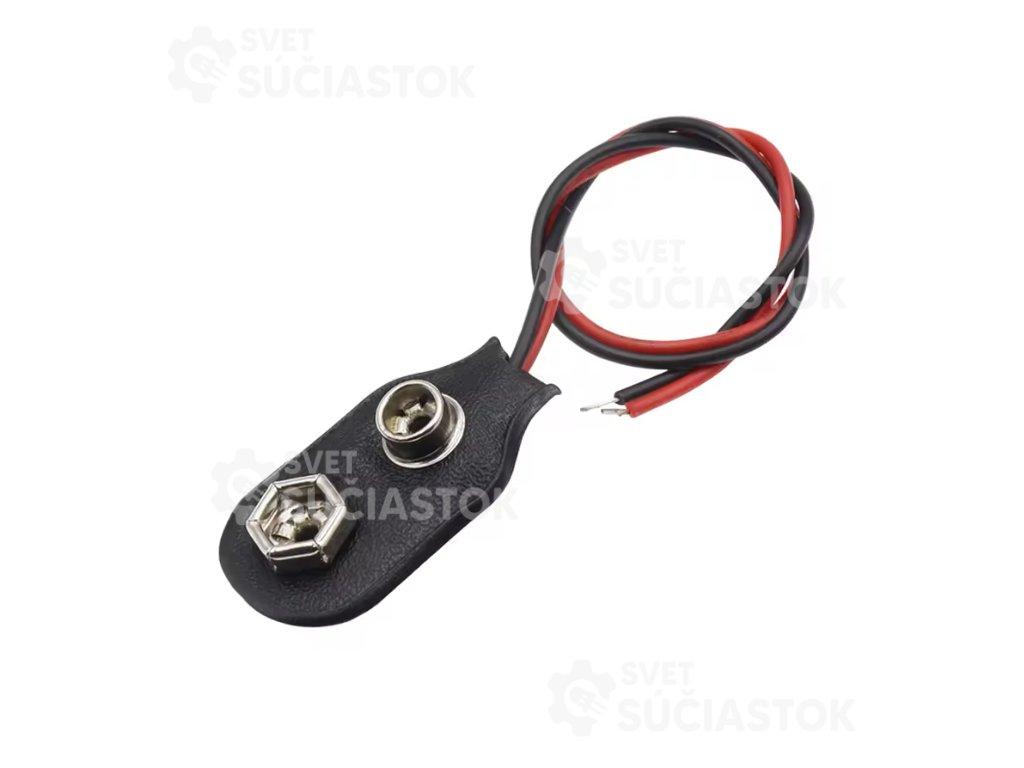 9V batériový konektor s predĺženými vodičmi, určený na jednoduché a spoľahlivé pripojenie 9V batérie k elektrickým obvodom a zariadeniam. Konektor je vybavený dvoma farebne odlíšenými vodičmi pre ľahkú identifikáciu polarity.