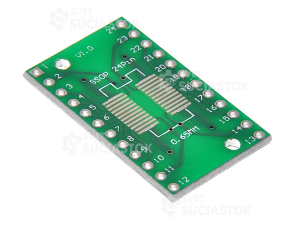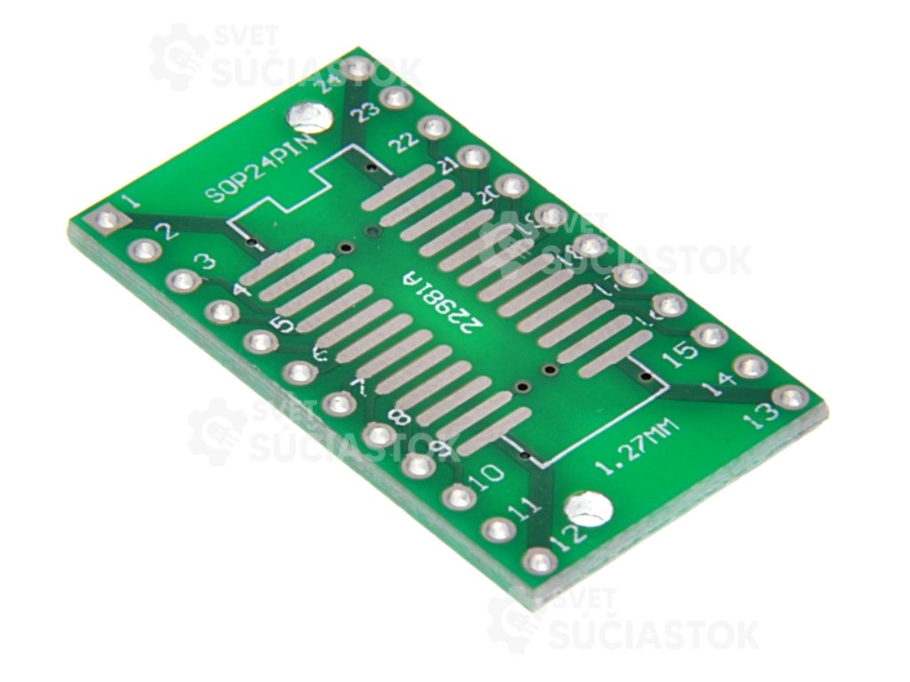 Obojstranný adaptér na pripojenie SMD čipov s 16 vývodmi do klasických DIP socketov.