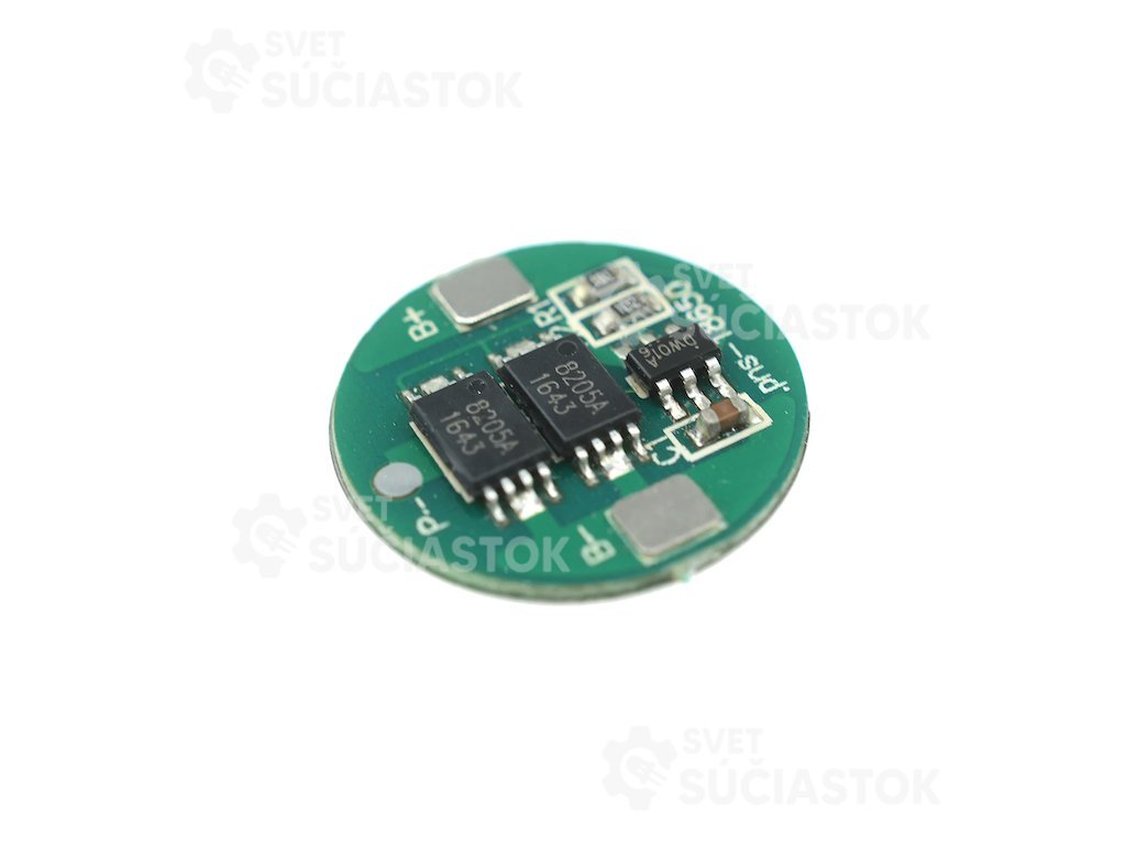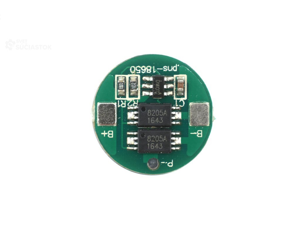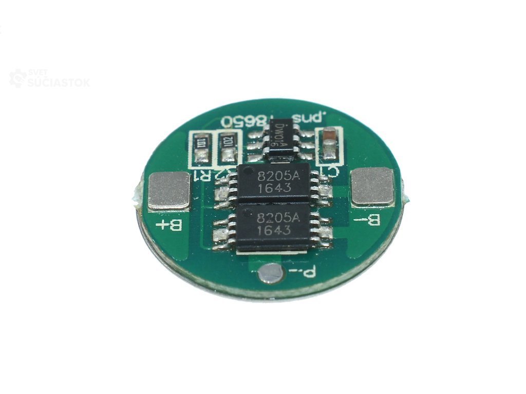 Ochranný obvod pre lítiovú batériu 4.2V. Modul chráni batériu pred vysokými prúdmi, skratom, ochrana batérie proti podbitiu a prebitiu.