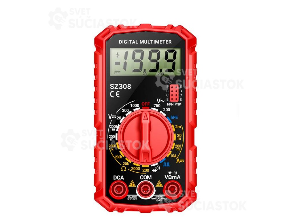 - Funkcie merania: DC/AC napätie, DC prúd, odpor, test diódy a spojitosti