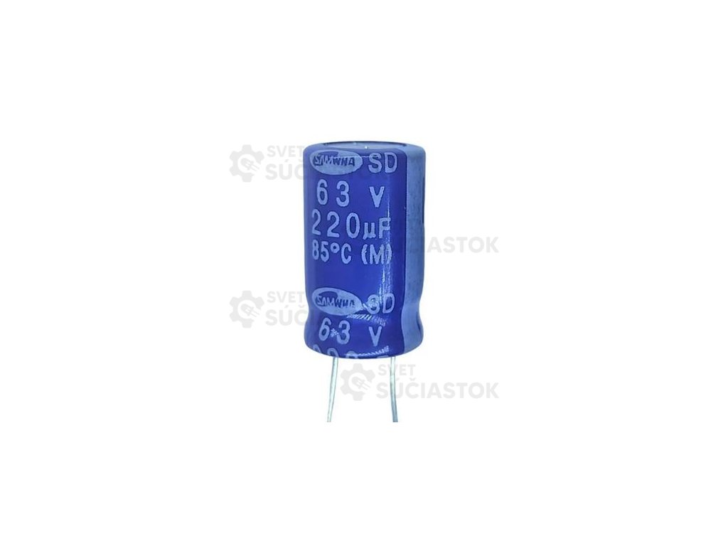 Elektrolytický kondenzátor 220uF/63V Rozmery 10x16mm Prevádzková teplota od -25 C do +85 C, P5