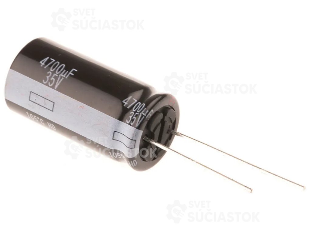Elektrolytický kondenzátor 4700uF/35V Rozmery 16x35,5mm Prevádzková teplota od 105 C P7,5