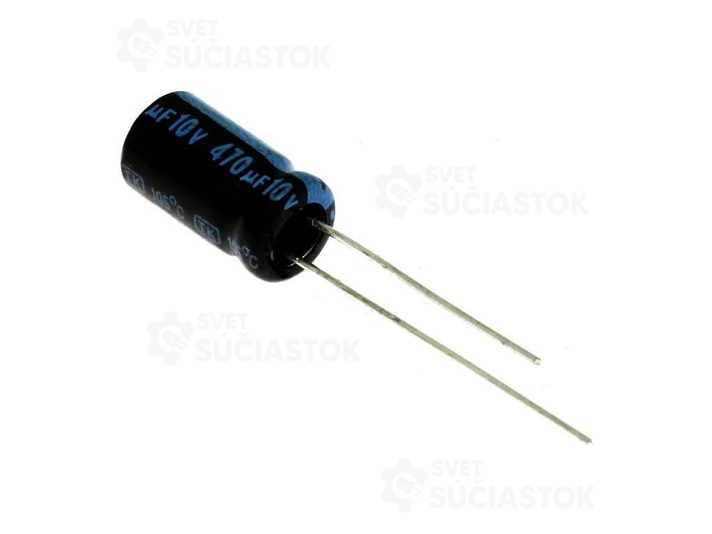 Elektrolytický kondenzátor 470uF/10V Rozmery 6,3x11mm Prevádzková teplota 85 C P2,5