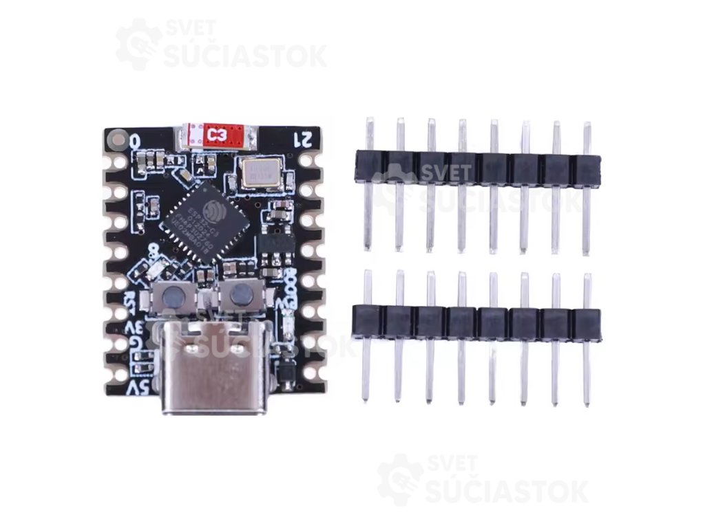 Kompaktná vývojová doska určená pre vývoj nízkoenergetických IoT aplikácií. Založená je na čipe ESP32-C3 s 32-bitovým RISC-V procesorom s podporou hardvérovej aritmetiky v pohyblivej desatinnej čiarke (FPU). Doska podporuje WiFi 802.11 b/g/n (2,4 GHz) a Bluetooth 5.0 LE, čo ju predurčuje na bezdrôtové aplikácie s nízkou spotrebou.Vďaka svojim malým rozmerom je vhodná pre projekty s obmedzeným priestorom, vrátane nositeľných zariadení. Doska obsahuje bohatú konektivitu vrátane digitálnych GPIO pinov, analógových vstupov (ADC), zberníc I²C, SPI a UART. Súčasťou je aj LED dióda, tlačidlo reset a tlačidlo na vstup do bootloader módu.