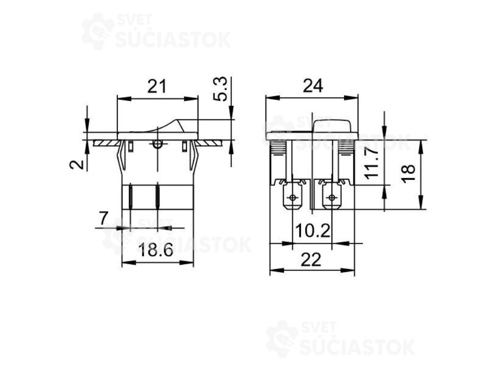 - Montážny výrez (približné rozmery): 21,9 × 19,2 mm