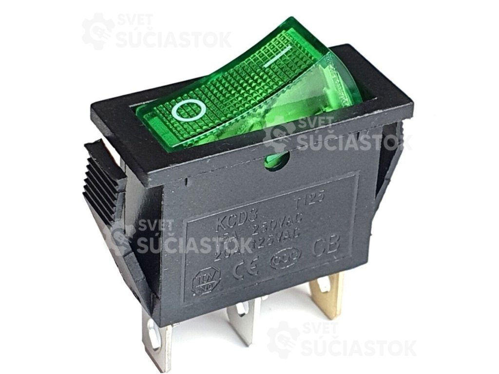 Kolískový vypínač KCD3 s LED – SPST, 2-polohový, rôzne farby