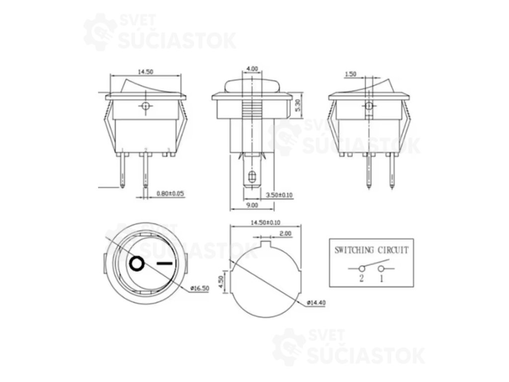 - Typ spínača: SPST, 2-pinový, ON/OFF