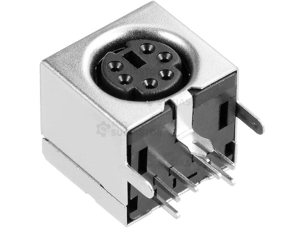 Panelový konektor mini-DIN so 6 pinmi určený pre montáž do plošných spojov (DPS). Vhodný pre prenos signálov v rôznych elektronických zariadeniach, napríklad pre klávesnice, myši (PS/2), audio alebo komunikačné rozhrania. Konektor má pevné plastové telo a kovové kontakty, ktoré zabezpečujú spoľahlivé a stabilné spojenie. Kompaktné prevedenie umožňuje jednoduchú integráciu do zariadení aj pri obmedzenom priestore.