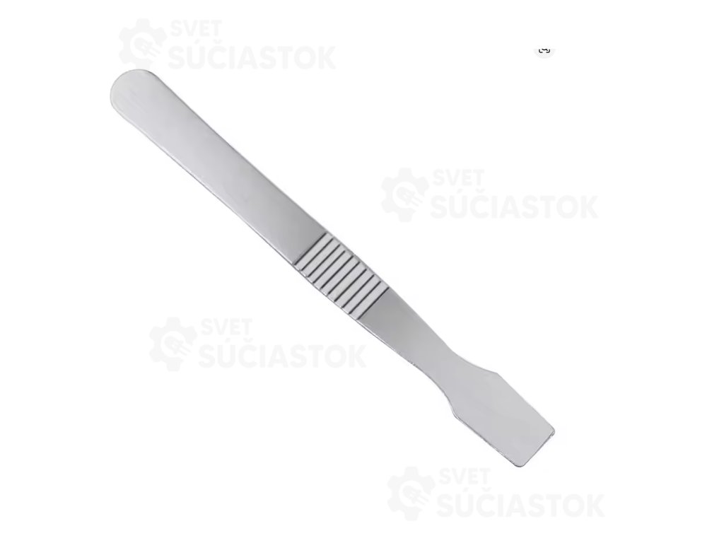 Kvalitný kovový nástroj určený na presné opravy mobilných zariadení a elektroniky. Vyrobený z pružnej zliatiny s vysokou tvrdosťou, vhodný na škrabanie, miešanie pasty, jemné páčenie alebo čistenie povrchov. Ideálny na použitie pri výmene displejov, práci so spájkovacou pastou alebo pri demontáži dielov.