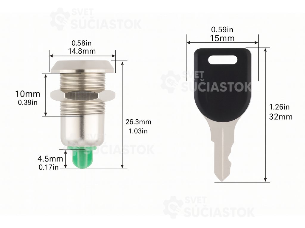 Bezpečnostný spínač určený na zapínanie a vypínanie elektrických obvodov pomocou kľúča. Vhodný pre rôzne aplikácie, kde je potrebná kontrola prístupu – napríklad rozvádzače, ovládacie panely, stroje alebo DIY projekty.