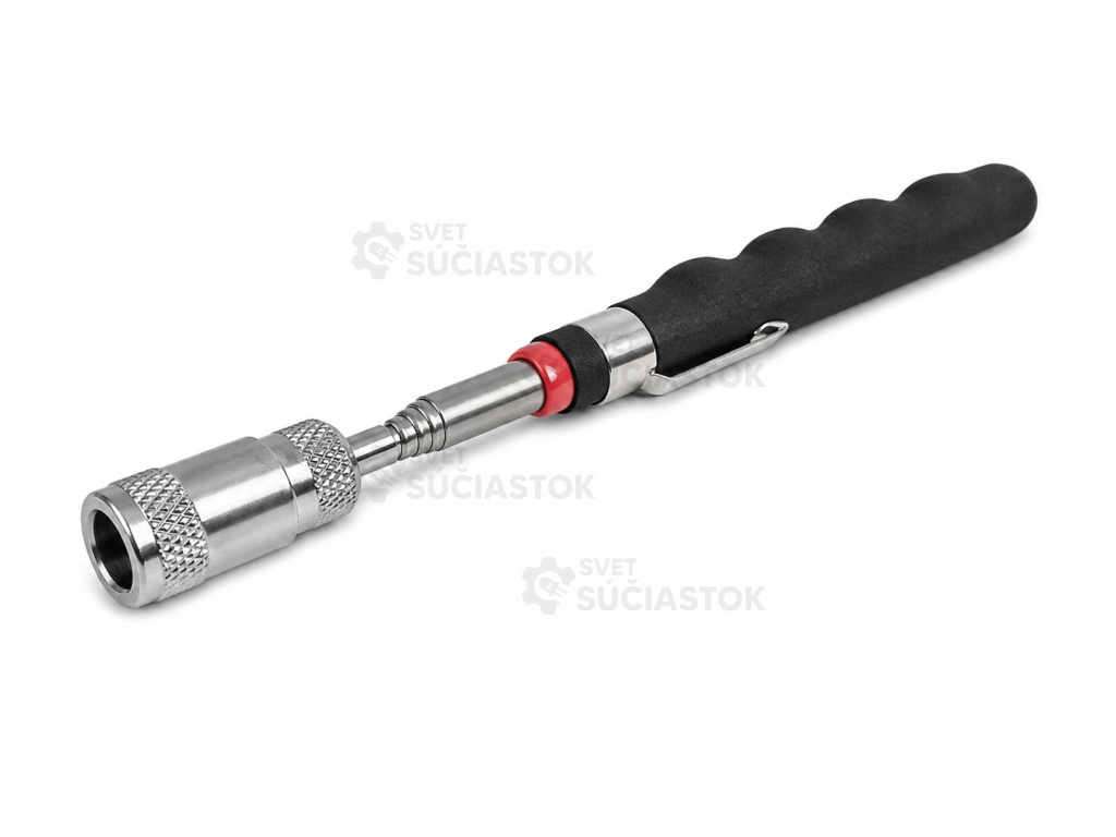 Praktický teleskopický magnetický zberač určený na zachytávanie a vyťahovanie malých kovových predmetov, ako sú skrutky, matice, podložky alebo iné kovové diely. Vďaka nastaviteľnej rukoväti s dĺžkou 250 až 750 mm sa hodí na prácu v horšie dostupných miestach, napríklad v motorovom priestore, za nábytkom, v dielni alebo pri opravách elektroniky. Integrované LED osvetlenie uľahčuje hľadanie dielov aj v tmavších priestoroch