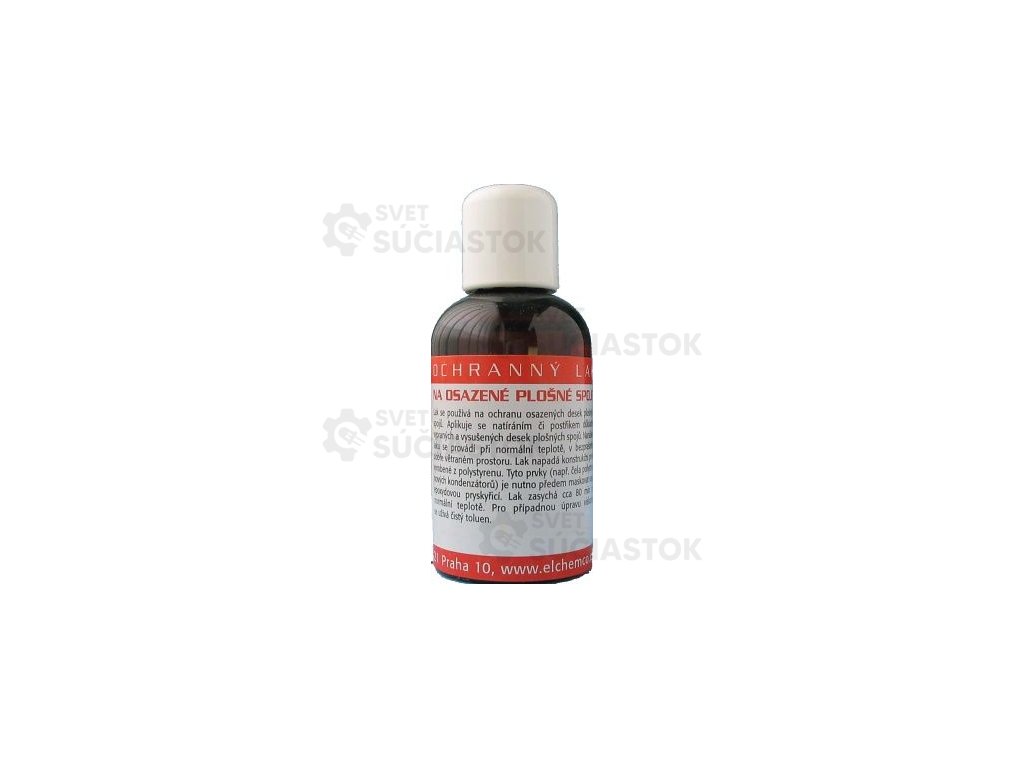 Ochranný lak určený na osadené dosky plošných spojov (DPS). Po zaschnutí vytvorí tenký ochranný film, ktorý pomáha chrániť meď a spoje pred vlhkosťou, oxidáciou a nečistotami. Je spájkovateľný – pri bežnom spájkovaní ho netreba odstraňovať.