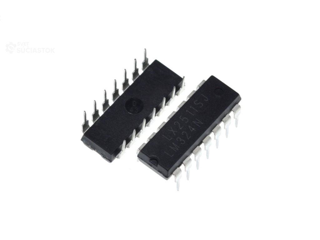 4-kanálový operačný zosilňovač LM324N v puzdre DIP-14.