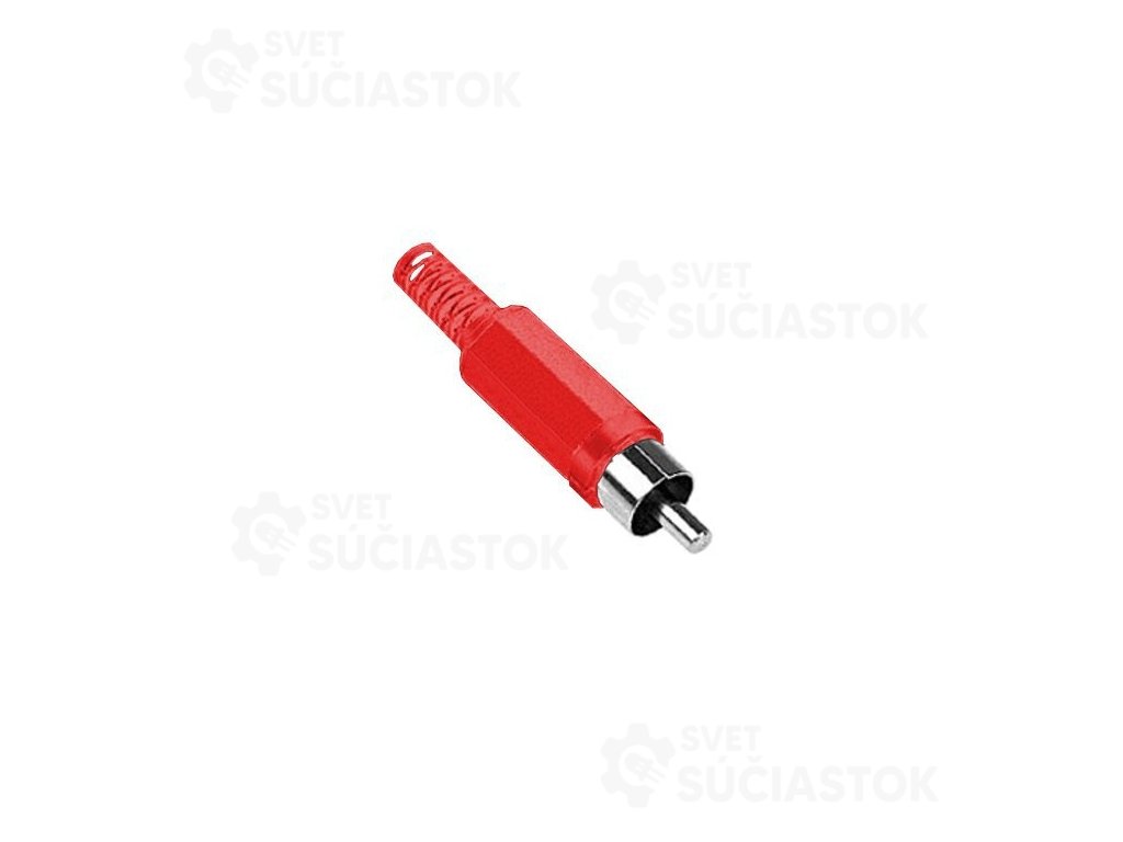 Cinch konektor navrhnutý na montáž s připojením kmeňa káblu. Verzia CSP‑RD je červená, typicky slúžiaca ako pravý kanál alebo signálová linka pri audio/video pripojeniach.