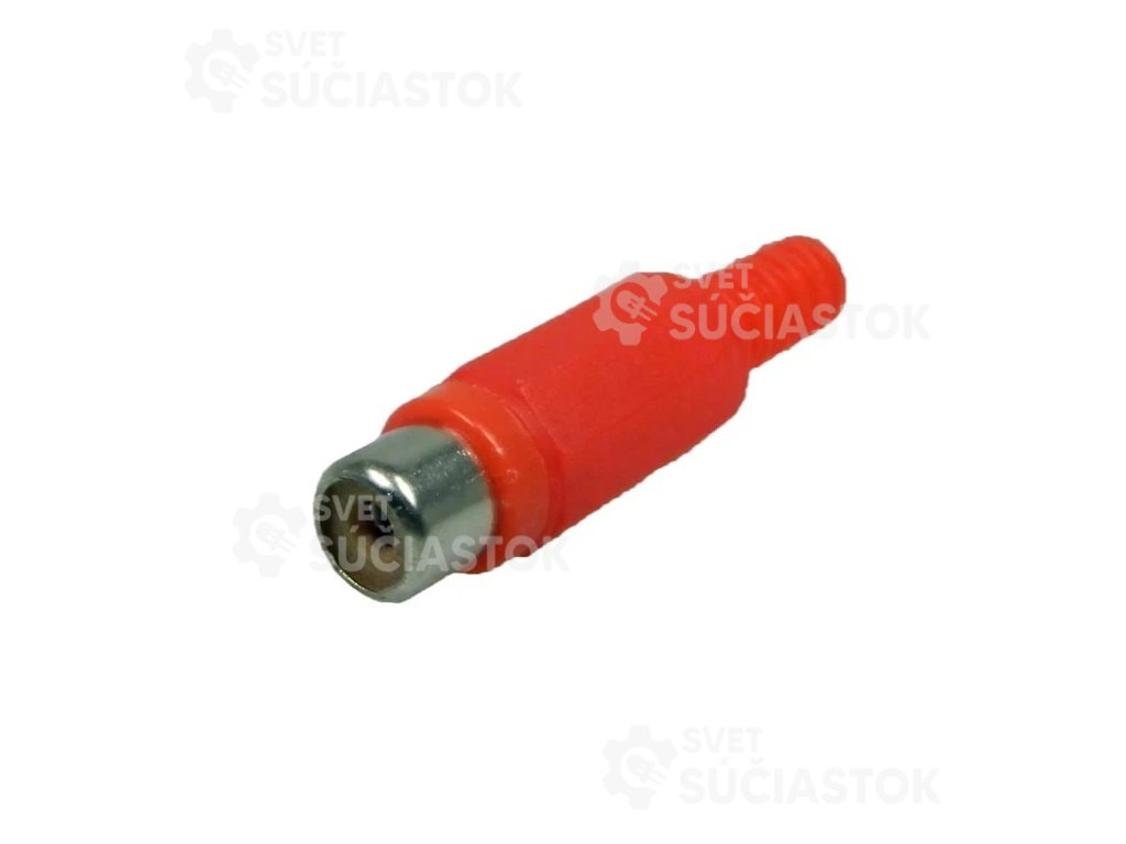 Cinch konektor v červenom prevedení, určený na jednoduché a spoľahlivé pripojenie v audio a video aplikáciách. Plastové telo zabezpečuje ľahkú montáž a dobrú mechanickú odolnosť.