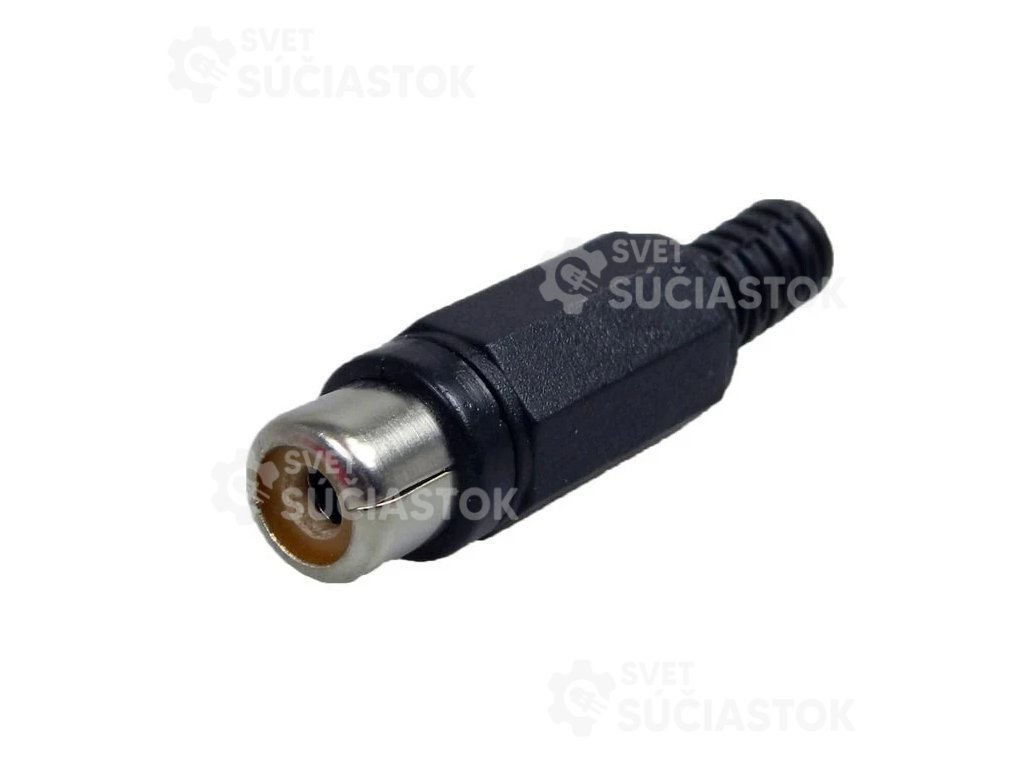 Cinch konektor v čiernom prevedení, určený na jednoduché a spoľahlivé pripojenie v audio a video aplikáciách. Plastové telo zabezpečuje ľahkú montáž a dobrú mechanickú odolnosť.
