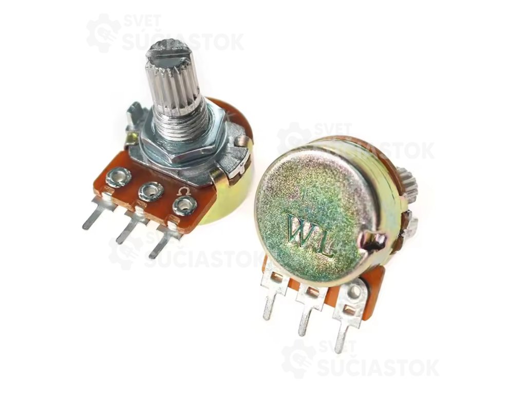 Rotačný potenciometer vhodný pre široké spektrum elektronických aplikácií a projektov. Potenciometer je navrhnutý tak, aby poskytoval presnú reguláciu odporu a spoľahlivý výkon pri rôznych pracovných podmienkach.