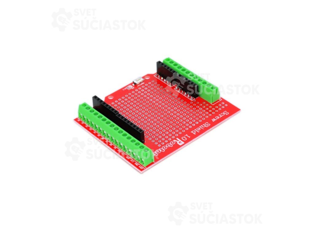 Screw shield uľahčujúci pripojenie externých periférií ku vývojovým doskám Arduino. Tento screw shield je kompatibilný s doskami Arduino UNO, Leonardo, či MEGA.