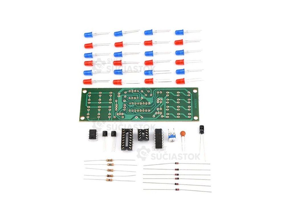 Stavebnica je vhodná na výučbu elektroniky, tréning spájkovania, modelárske projekty alebo ako svetelný efekt do rôznych konštrukcií. Obvod je riadený časovačom NE555 a čítačom CD4017.