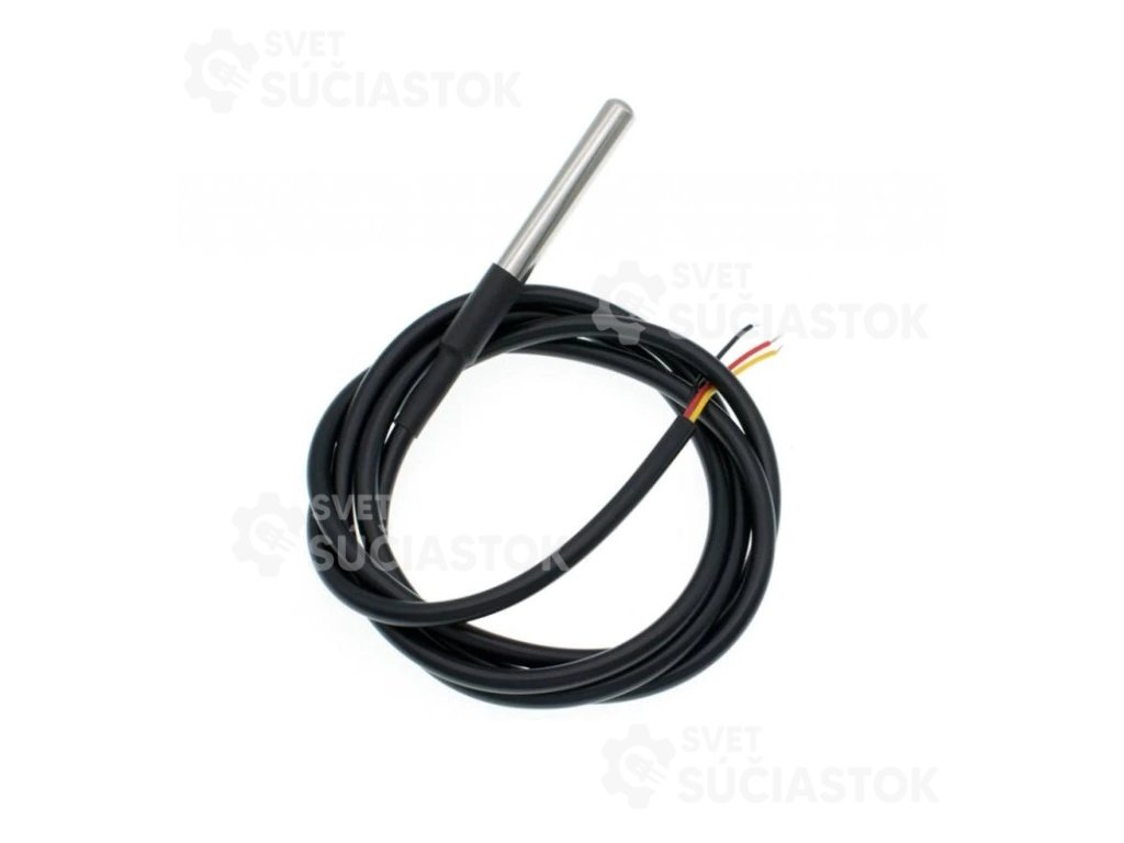 Rozsah −55 až +125 °C, presnosť ±0,5 °C (−10 až +85 °C). Napájanie 3–5,5 V, zapojenie: červená (VCC), žltá (DATA), čierna (GND). Vhodný na meranie teploty v rôznych prostrediach.